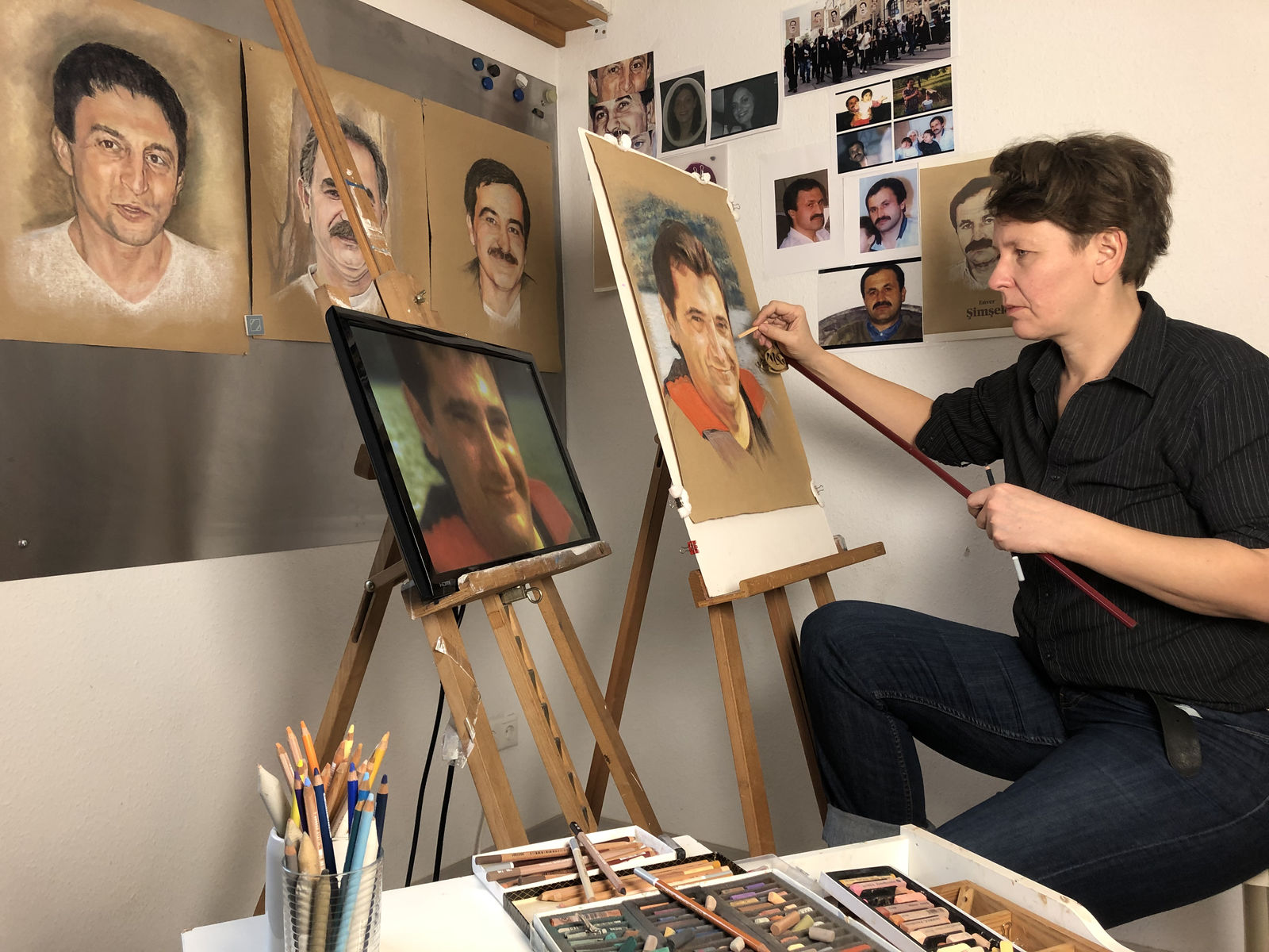 Portraits zum Gedenken an die Opfer des NSUPastellkreide auf Ingréspapier, ca.42 x 79 cmVeronika Dimke, 2018 – 2020